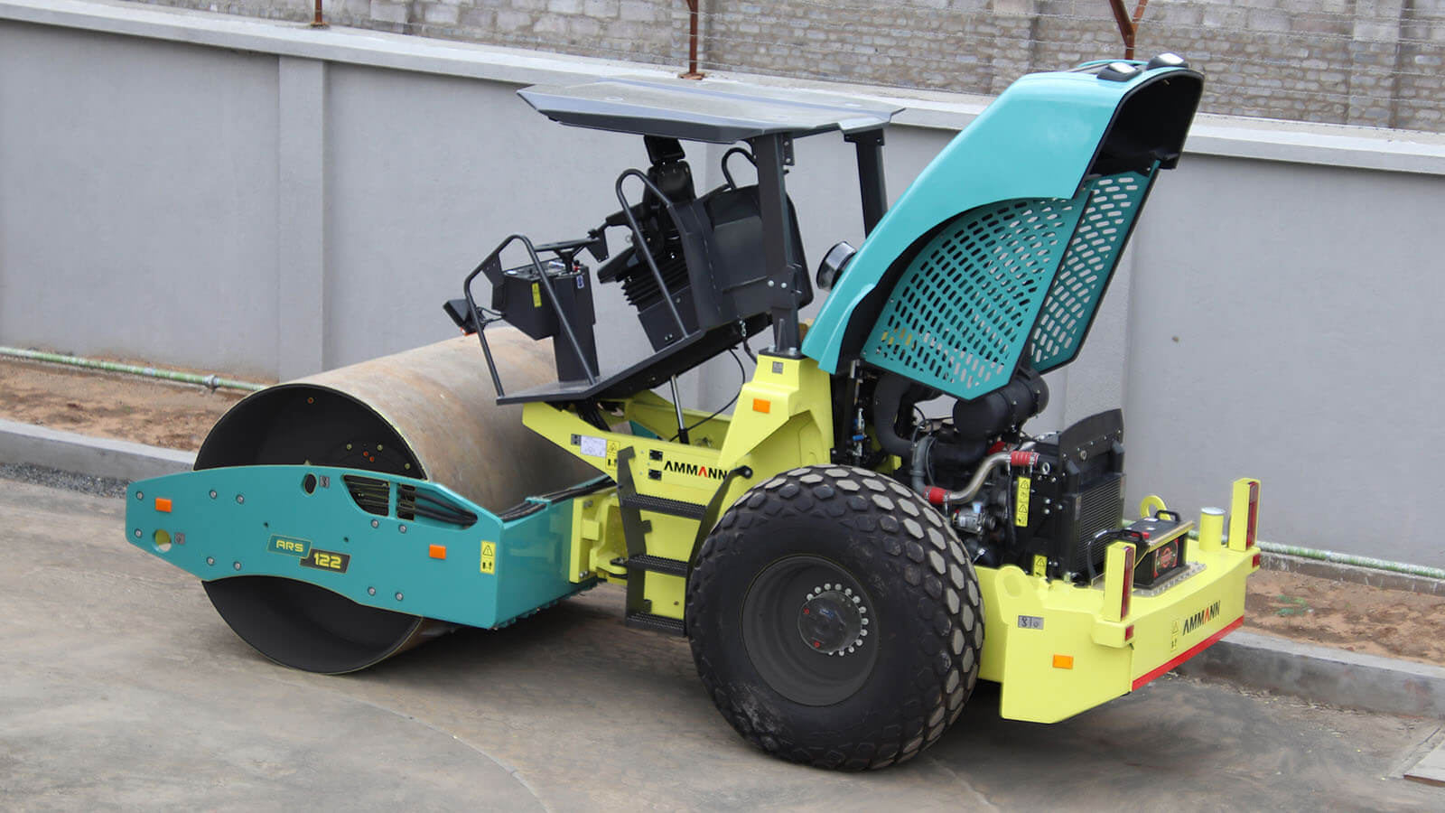 La transmisión hidrostática de ambas ruedas y el tambor garantizan la tracción y el rendimiento de desplazamiento del compactador de suelos ARS 122 de Ammann.