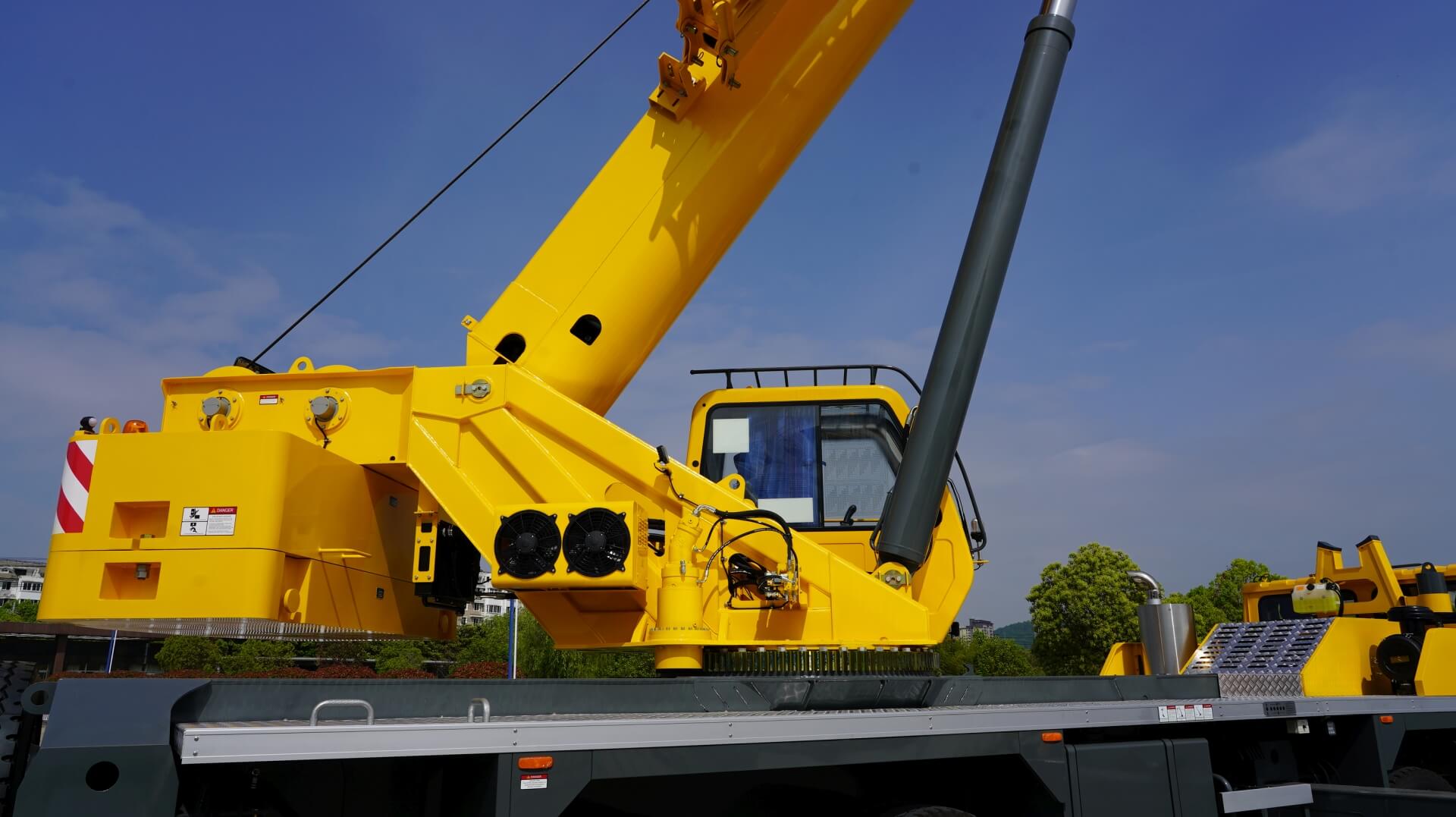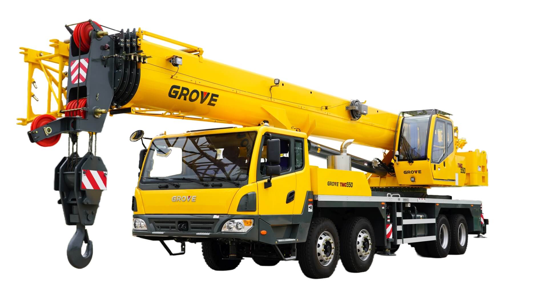 La capacidad de elevación de 55 t y la pluma principal de 45 m de la TMC550 le brindan la fuerza y el alcance que necesita en el lugar de trabajo. La grúa está equipada con un plumín de dos etapas de 16 metros para un alcance aún mayor.